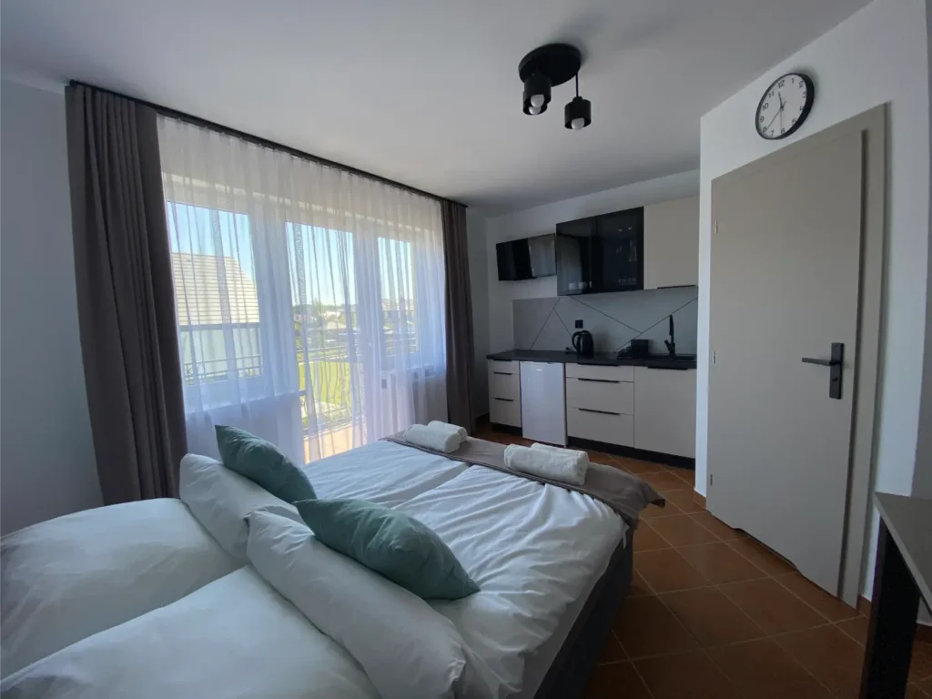 Jasny apartament dla 2 osób, wyposażony w klimatyzację, balkon i aneks kuchenny. Przestrzeń została zaprojektowana z myślą o wygodzie i funkcjonalności. Idealny zarówno na weekendowy, jak i dłuższy wypoczynek.